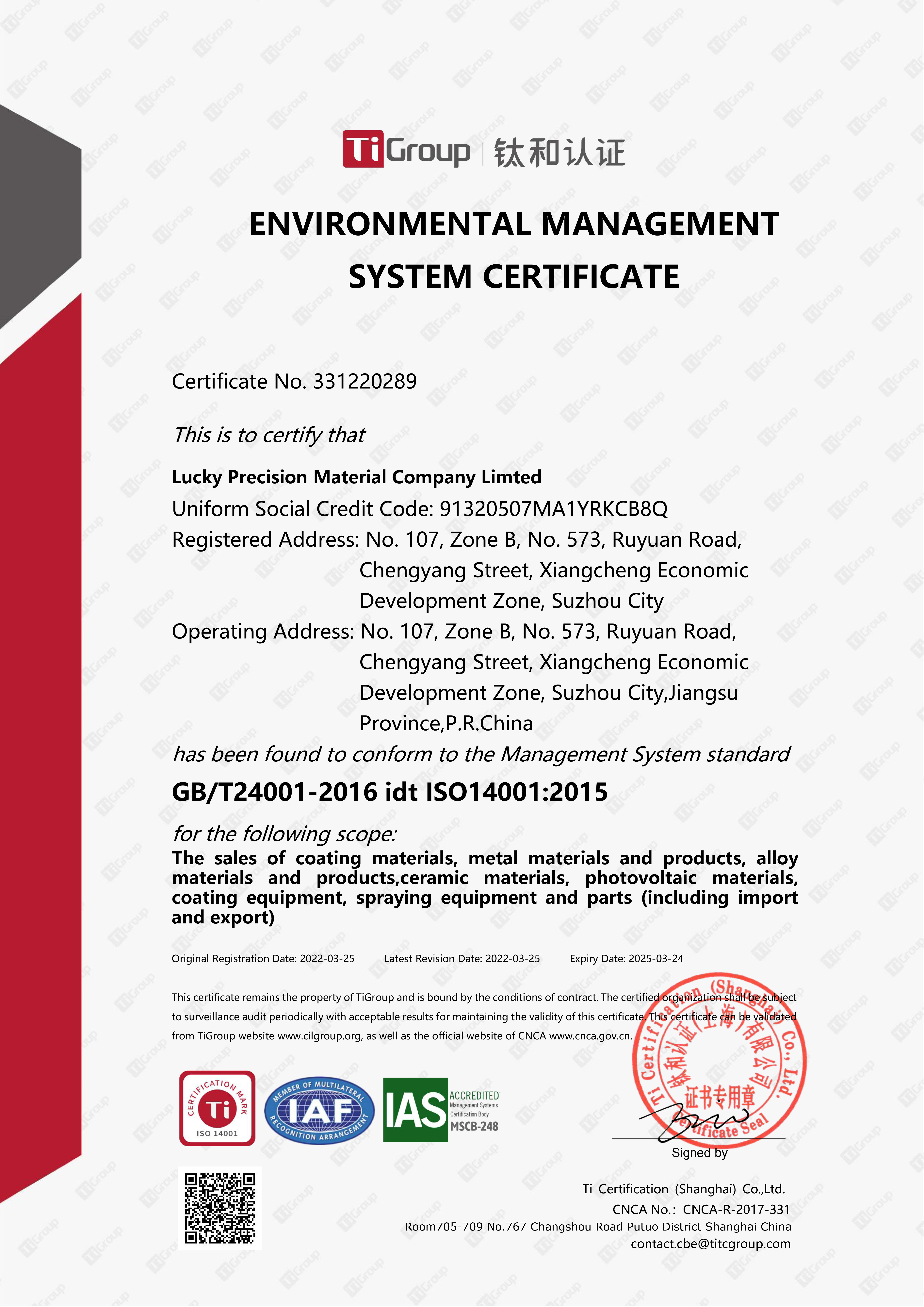 Lucky precision material company Limited is a new applied material company that specialized in research & production & sales and recycle of PVD coating material. Headquarter is located in Suzhou, with a branch in Shenzhen. Lucky Precision's core team has more than 10 years experience in coating material filed, which maintain good technical communication and business cooperation with customers and partners.